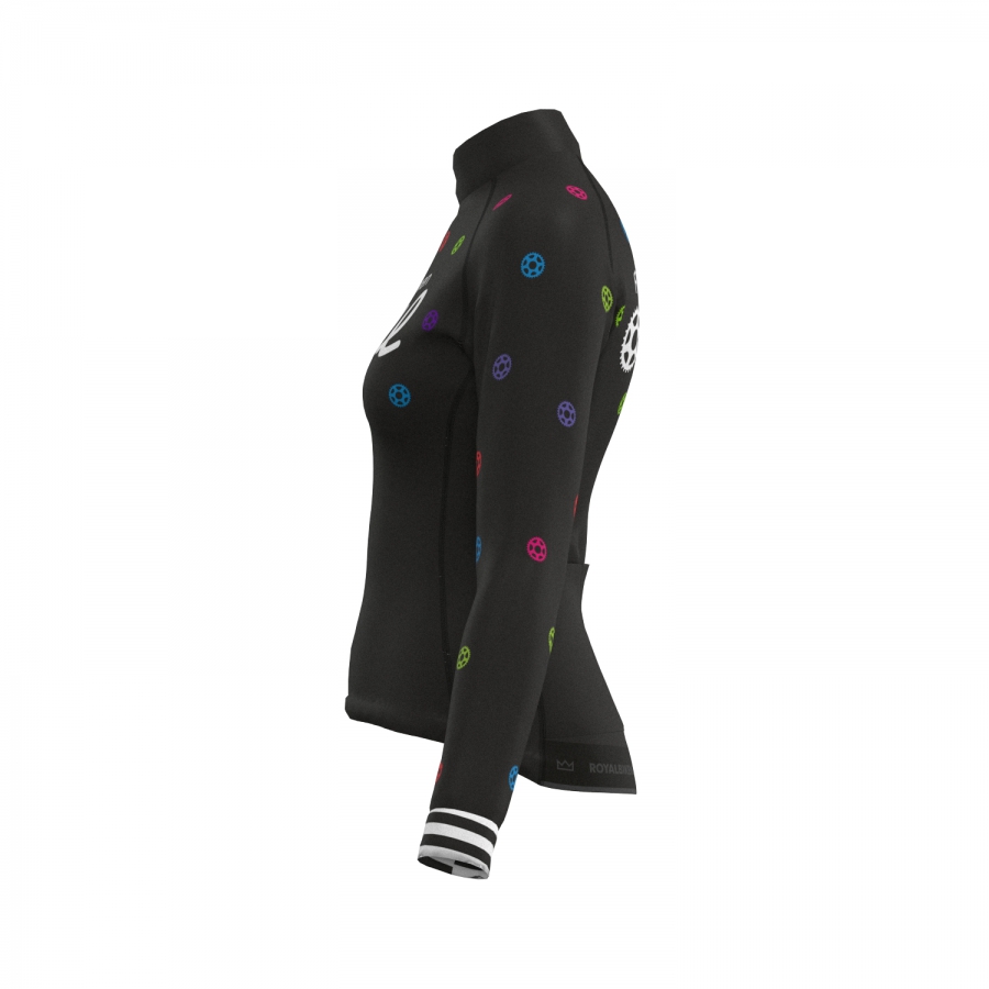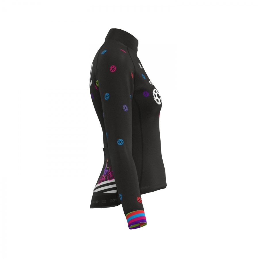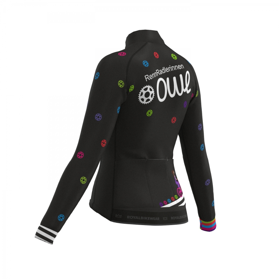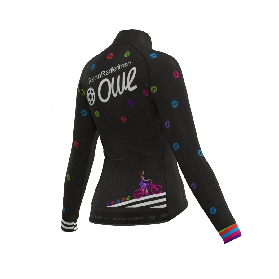 Die Frauenlangarmtrikots sind kürzer, enger und mit stärkerer Taillierung geschnitten als die Männervarianten. So lassen sie den weiblichen Körper optimal zur Geltung kommen.Es gibt sie in den gleichen Stoffen wie die Männertrikots. Sowohl 2nd-Layer als auch Superroubaix sind angeraut und haben eine bessere Wärmeisolierung als die Kurzarmtrikotstoffe.Die Langarmtrikots werden mit Flachnähten und optional mit gewebten Spezialabschlüssen an der Rückseite gefertigt. Die Reißverschlüsse können wahlweise verdeckt produziert werden. Die Arme schließen mit eleganten Bündchen ab.